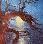 2017Maansondergang met impressionistische trekken 100x100cm.
