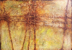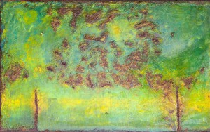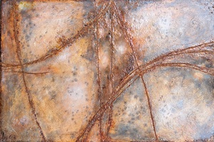 2019Olieverf en roest op staal. Het roesten gaat heel, heel langzaam door. De titel slaat niet (alleen) op de achteruitgang van natuurwaarden, maar het gaat ook over de maatschappij. Hoe wil je je daarin bewegen? Hoe kijk je naar jezelf en de maatschappij? Bij wie wil je horen? 60x100cm.